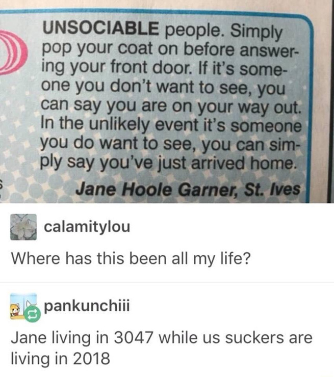 A group for introvert discussions. Feel free to post memes, links, music, anything you like. The only group rule I have is don’t be an ass.