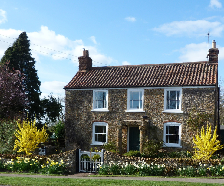 Some people think that Forsythia is a bit vulgar if not overdone, but it could just be a case of setting perhaps ? Very old cottage in a nearby village.