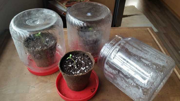 One of my "lazy" Gardening ideas that actually worked! Cat-proof method of starting plants indoors in "their" garden window: Jumbo size peanut-butter plastic jars. No, I didn't eat all that peanut-butter. My good neighbor is a fireman and recycled...