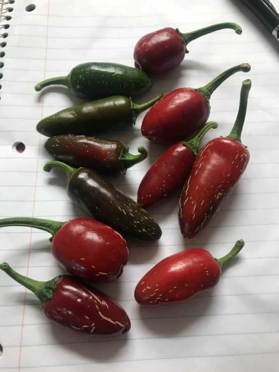 Yesterday's jalapeño harvest! I picked them all because the smaller ones had stopped growing. They have a really nice spice without being too hot to eat raw.