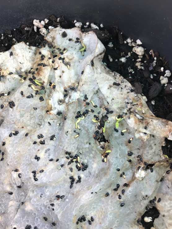 Up date on my dragon fruit. They started getting mold on the paper towel so I took them out and put them in pots. Some are now sprouting.