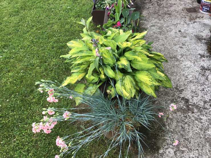 My Pinks are looking reasonable . Hostas about to bloom too.