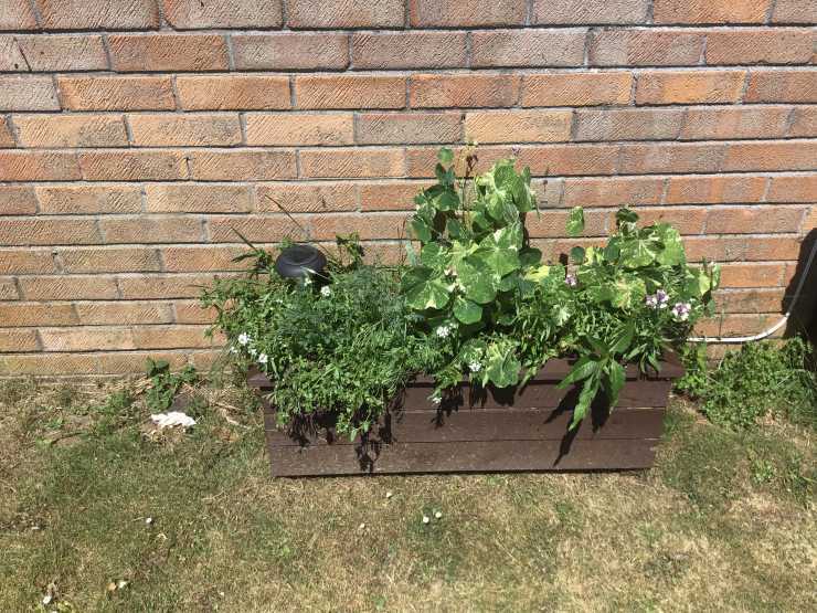 This is the result so far of half a box of wildflower seed from the £1.00 shop. I k the nasturtiums must have self seeded from last year . When I get overrun again with cabbage s and 40 billion caterpillars , I,ll let you kmow