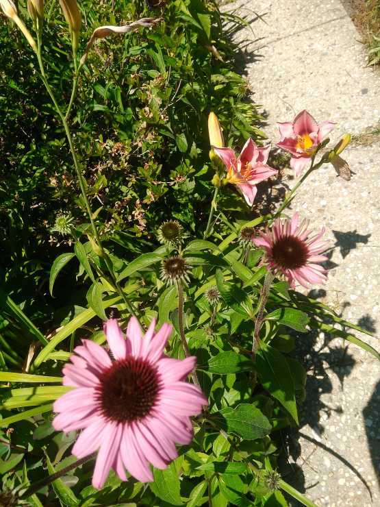 Coneflower morning. I find their structure slightly vulgar but I like the color contrast where they are mixed with orange lilies. Also, I love the yellow verio birds that come.