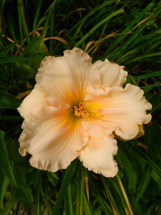While we’re on a roll about daylilies :-). Last year I picked this one then photographed it inside the house, in tiny bottle with water, from an angle straight from the top ... check out those ruffled edges! And in the right light one can see the ...