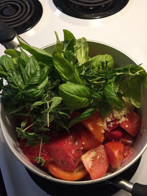 I threw all my extra tomatoes in a pot this morning...added in fresh basil and oregano from my garden...and lots of garlic...a few peppers from the garden too...some s/p....and now I have tomato sauce for my vegan eggplant parm (cashew cheeze) ...
