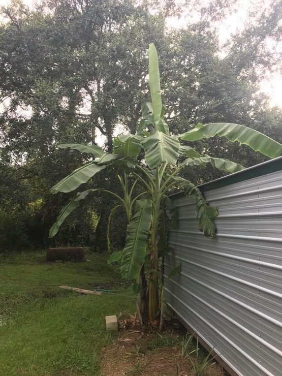 Look at all the Ice Cream bananas trees we have. The est one is the daughter It blow past its mother plant.