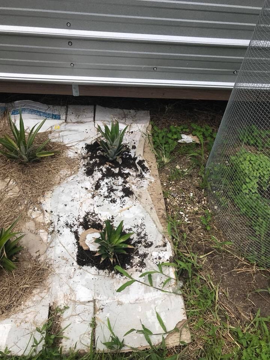 Put two more pineapples in the ground we now have 22 pineapples plants in the ground now