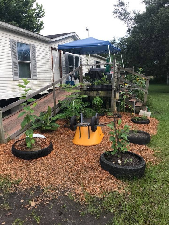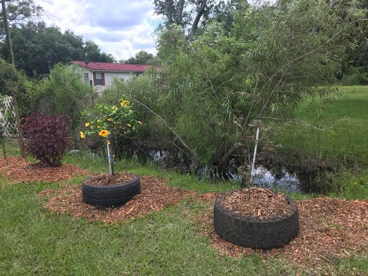 One of my Hibiscus and our Japanese Red Maple we’re struggling with all the water. So we dug them up and planted them in tires.