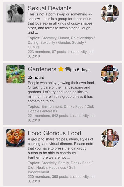 We are really growing fast becoming one of the more popular groups on this site. We now have 221 members. We are one member ahead of food glorious food And 2 members behind Sexual deviants. Not a bad place to be lol.