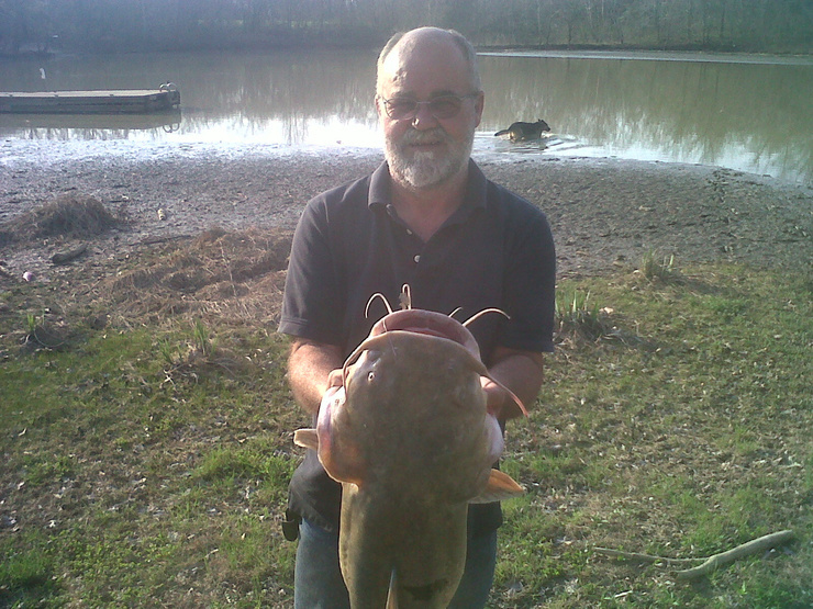 Went to a friend"s little cabin yesterday, I was going to spend the night, But my dog Thor hurt his foot on some glass on the side of the road. Had to bring him home and take care of him. The fishing was good,The catfish weigh 23lbs.