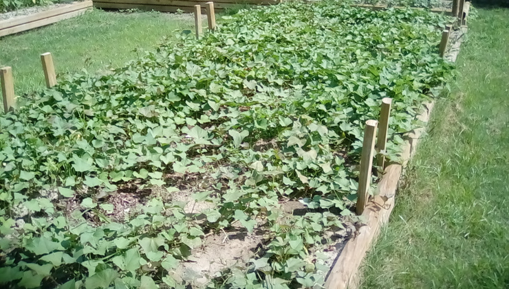 I am new here, as an introduction I took two photos in my garden. The amazing ! Asian long beans and my raised bed of sweet potatoes vines.