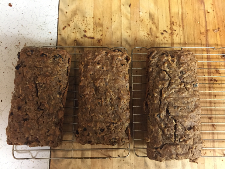 Top of the day to everyone. Zucchini bread that I baked yesterday. Not so pretty but it tastes alright. I followed SkotlandSkye's recipe (more or less). I'm taking the three loaves to our family reunion this weekend for the real taste-testers.