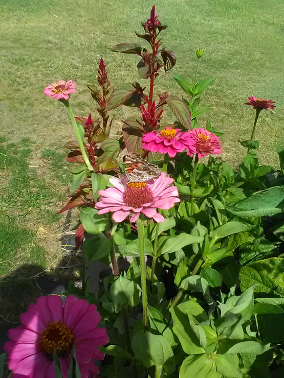 Butterfly visiting the zinnias.