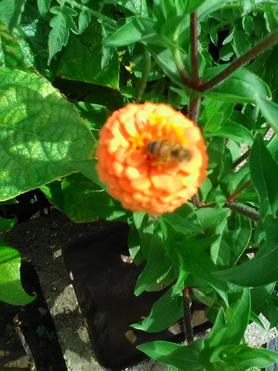 I have bees in the zinnias and the okra is blooming!