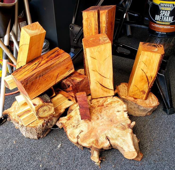 Pruning some downed cherry limbs and removing one ornamental crab apple tree after a pretty good squall line went through. I saved a few chunks, ran them through my table saw... and slathered boiled linseed oil on them to cure. Hopefully there will...