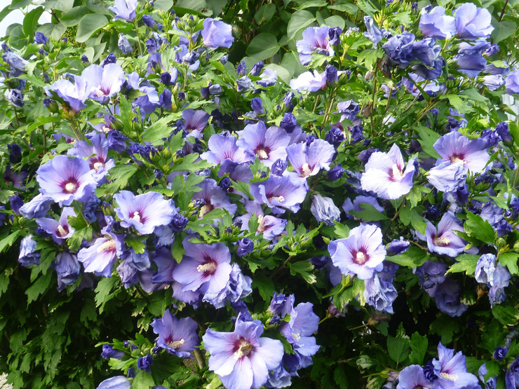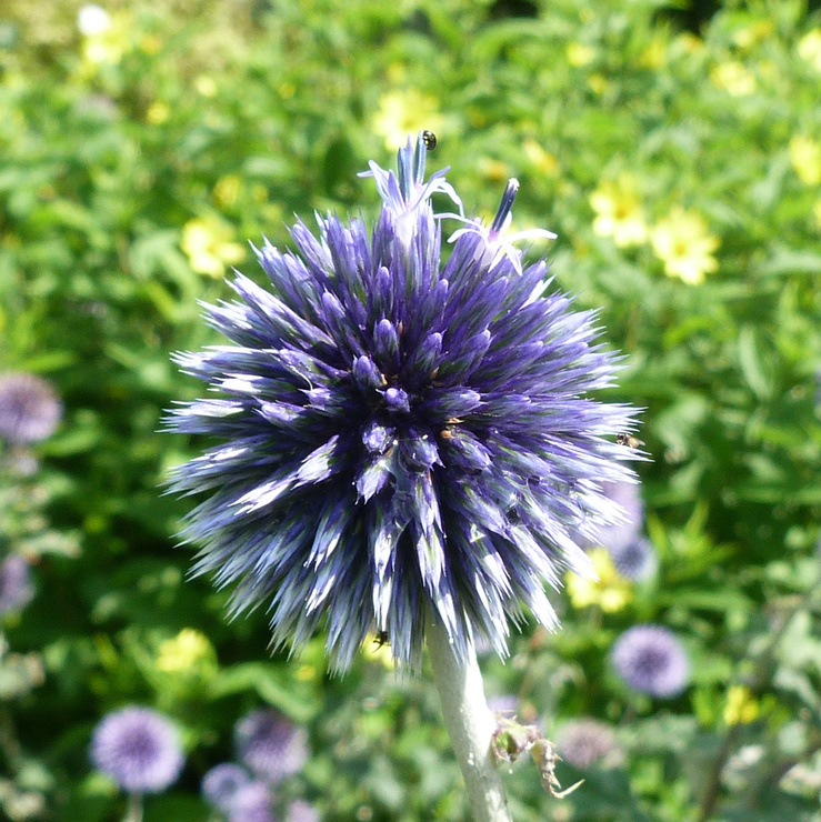 Late summer flower colour, in the UK. Echinops ritro, Phlox, Buddleja, Purple Loosestrife, Hollyhock and Agapanthus.