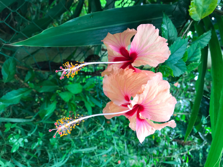 A rainy day here, unexpectedly, though much needed and it was not grey. I felt the need to see what was flowering... there's a Hibiscus, Petrea or Sandpaper vine, Pink Ginger, a Heliconia, a Croton, pendant Heliconia, the male Papaya flowers, ...