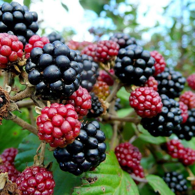 Wild blackberries. They grow anywhere freely in South West England. Give them another week or so, they will be ready to pick, sweet and juicy. :)