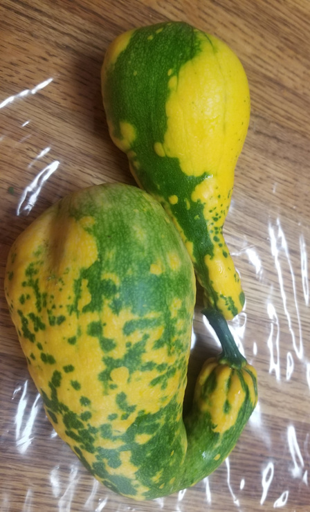 Yellkini squash designed by my neighbor Myrtle with the help of local bees.