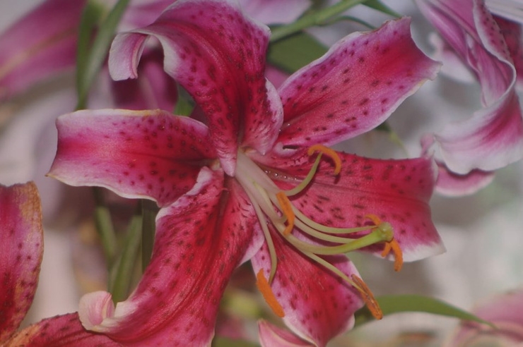 We had stormy weather last night, so I cut the Lillies and some Hosta flowers to enjoy them in the living room. Their scent is perfuming the air. The bouquet with Zinnias and Sunflowers is already a few days old. I used to be very reluctant to cut ...
