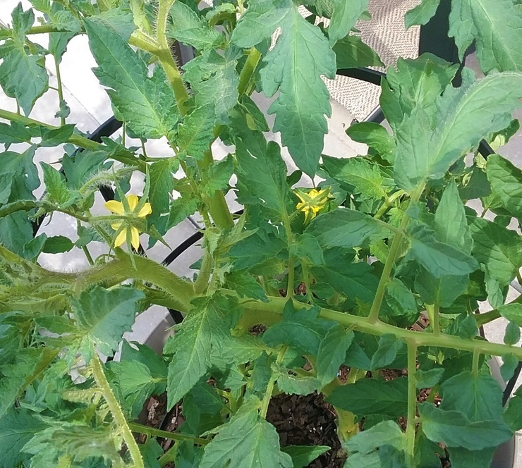 My tomato is growing like mad... and flowers have arrived! Yay! The last pic is when I planted it 2 weeks ago.