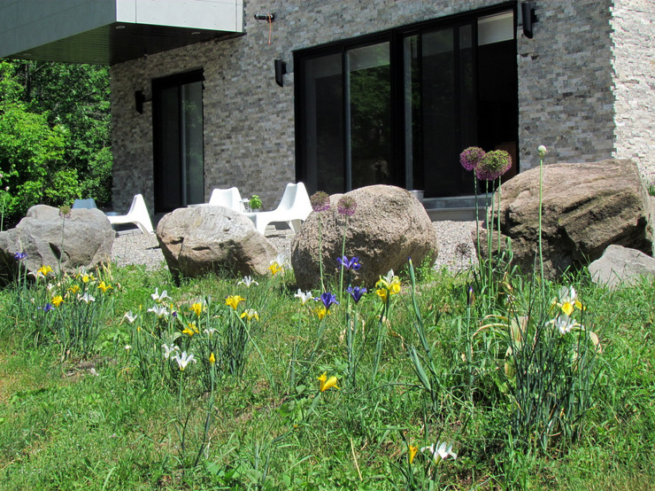 The flower garden is starting to fill in and the Alliums and Irises are coming along nicely, although the deer have eaten all the tulips down to nubs.