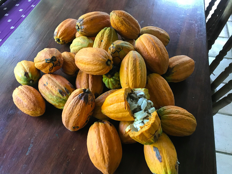So thrilled - this is my harvest from one cacao tree! More than a 5 gal bucketful.