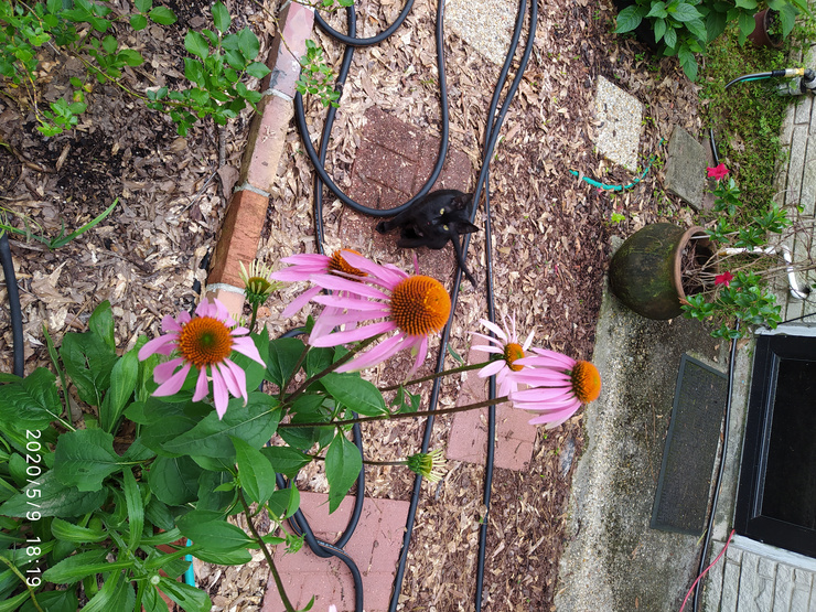 Ginormous Coneflower, or tiny cat? Who can say? 😜 All i know for sure is it is sideways.