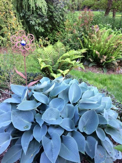 Our spring flora is glorious this year in the PNW, after a mild winter and early spring! My Albiqua Blue Crinkles Hosta went from ground to mound in about 3 weeks, bigger than ever at about 4' across. In back are a Russet Fern, Wild Huckleberry, ...