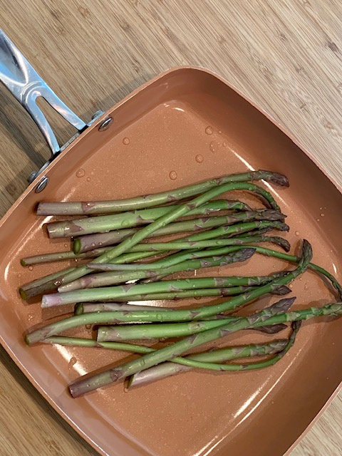 Grown under the cover of some row cover to protect it from the frost that is still a regular threat until the end of May, sweet asparagus spears plucked fresh from the garden and made into a cheese and asparagus omelette.