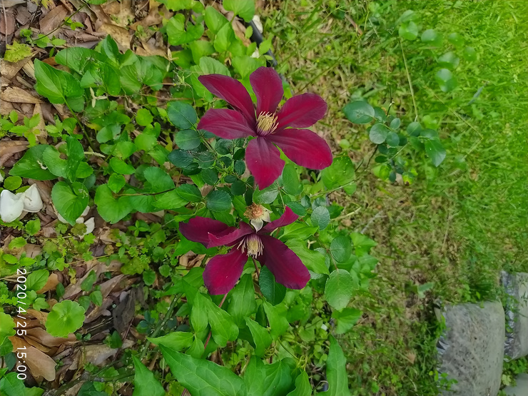 Yay! My baby Clematis both survived the winter to bloom again! They sure haven't grown a whole lot, though. These are Niobe and Diana's Delight....with a photo-bombing black eyed Susan.