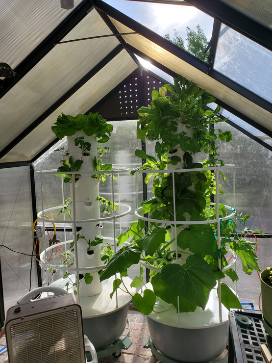 First year with our 8 by 12 greenhouse and the first year we put the Tower Gardens inside. First batch of greens this week from the towers.