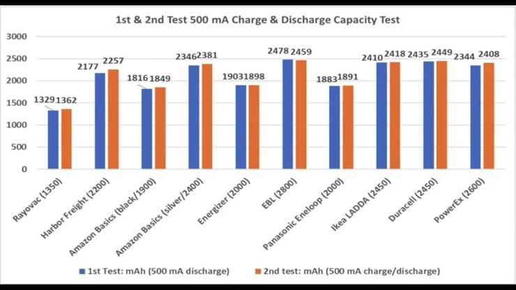 I've been a battery geek since early Elementary School. I like this video that shows test results of nickel metal hydride batteries and alkaline batteries. I did not realize the nickel metal hydrides have a higher amp hour capacity. The problem with them is, they lose about 10% charge per month ( if I remember correctly) just sitting on the shelf. Amazon basics SILVER came out on top.