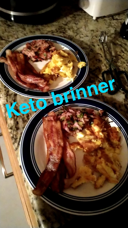 Posted by fauxname11Bacon ends & pieces, mushrooms, spinach and a few grape tomatoes. I’m down another 2.6 pounds. I fast for 24 hours once a week and considering increasing it to 34 hours.