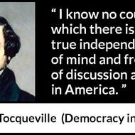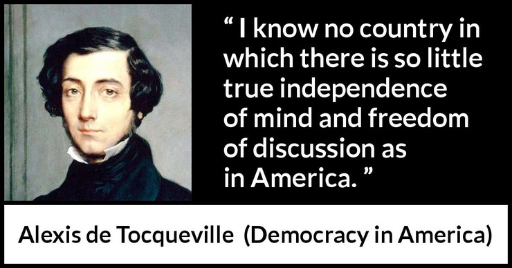 @WonderWartHog99 Do you even know who Alexis de Tocqueville was? He came from a Norman aristocratic family that fled Paris to avoid being shortened during the French revolution. Of course he hated Democracy it took much of his family's power and wealth away from them and ended serfdom so he actually had to pay wages instead of "collecting taxes"