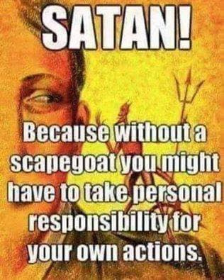 I met a pastor once who was trying to sweet talk me into going to his church when I told him I was atheist. He was gonna start telling me his story about how "the devil" tricked him into cheating on his wife.. I told him "the devil didn't make you do anything, that was a choice that you made all on your own." I guess he wasn't expecting that so he left looking embarrassed.