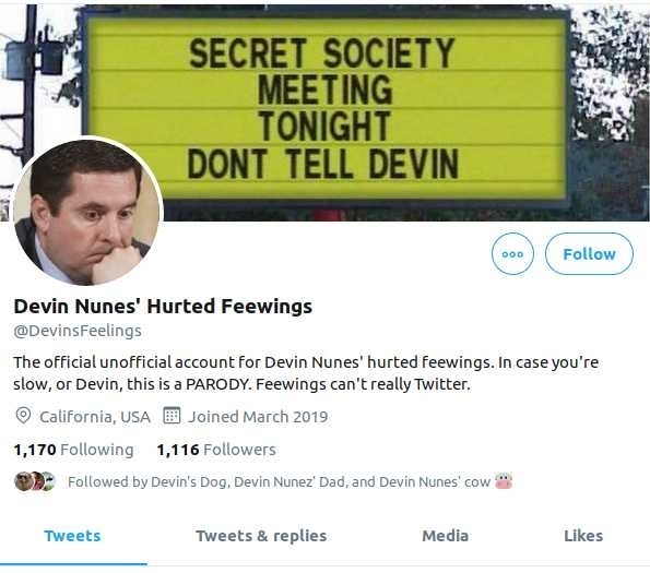 If you start one as "Devin Nunes bucket of shit" please let me know so I can follow...