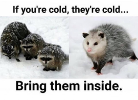 Opossums are all show. They are actually very gentle and won't hurt you. They also eat ticks! They hiss and show their teeth when threatened.