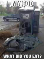 Was at Glastonbury Festival once and a truck backed up to a line of them to pump out the effluence. As it did it caught the end one tipping it over with someone inside.. So it fell forwards onto the steps as on a platform. The door was maybe 1 inch open.. I don't need to say anymore lol .. Everyone ran over and got him out and to ambulance but he was ill.