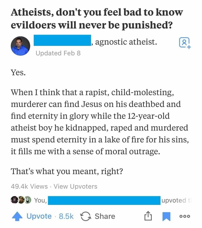 Posted by backtobasicsPeople swear there is no heaven, but pray there is no hell.