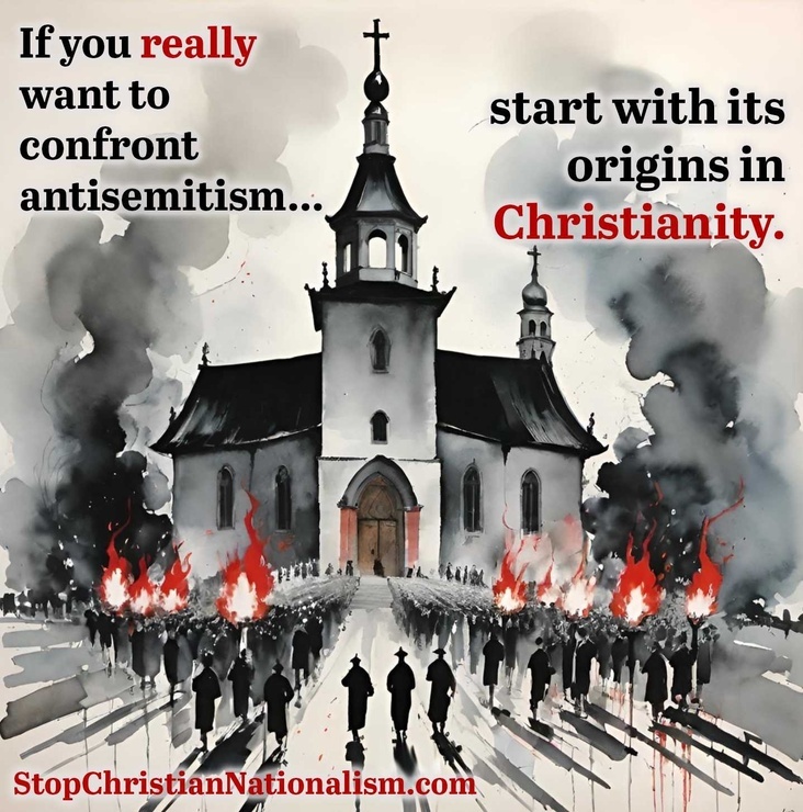 If you REALLY want to confront antisemitism, and you’re not just using antisemitism as a convenient political weapon to bash your enemy, start with the origins of antisemitism in Christianity. Until you confront that, you’re just playing games.