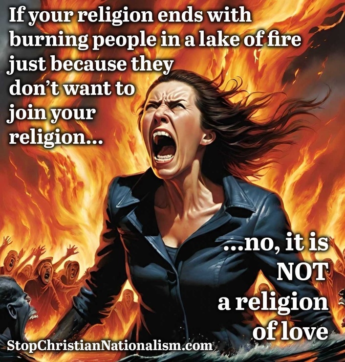If your religion ends in burning people in a lake of fire just because they don't want to join your religion, no, it is not a religion of love.