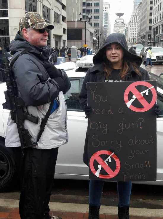"Counter protesters" show up heavily armed to confront unarmed and peaceful protesters - mostly teenagers. Seems they have to "protect themselves" from the protesters. Kudos to the kids who stand up to them with humor rather than rage. Look, guys - ...