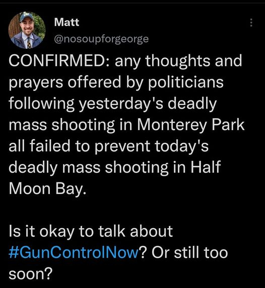 I heard there was another mass shooting in the gun-controlled "paradise" of California that of which at last count had left ten dead and at least ten injured. The shooter appears to be a seventy-two year old Chinese immigrant, and it appears the ...