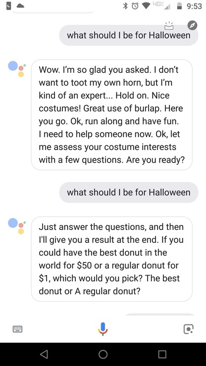 If you have iPhone or Google assistant, ask it what you should be for Halloween. Then screenshot and share your results.