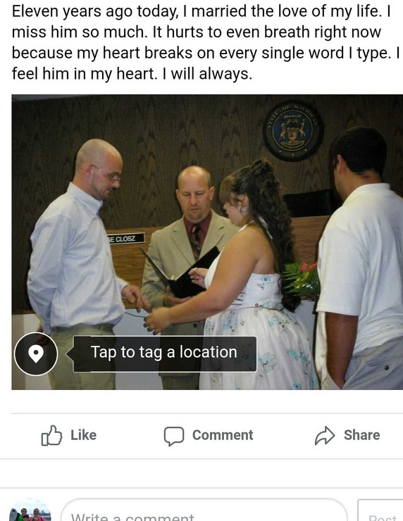 Posted by Huskygirl4everToday would be our 27th anniversary it's the seventh one without you and it hurts this picture would be taken on June 12th the original date we had set for the wedding but we had to get married a ...