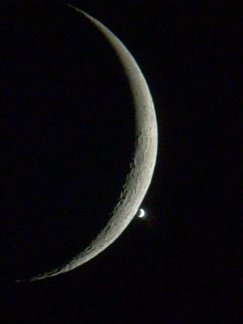 So, tomorrow morning the moon is going to occult Venus but not in the USA. Down in South America and the Pacific ocean. But, Venus will be very close to the moon here in this country so take a look. The photo is from 2009.