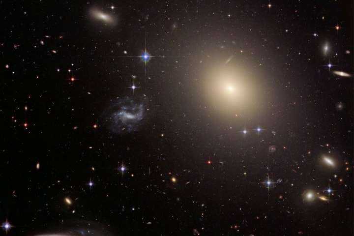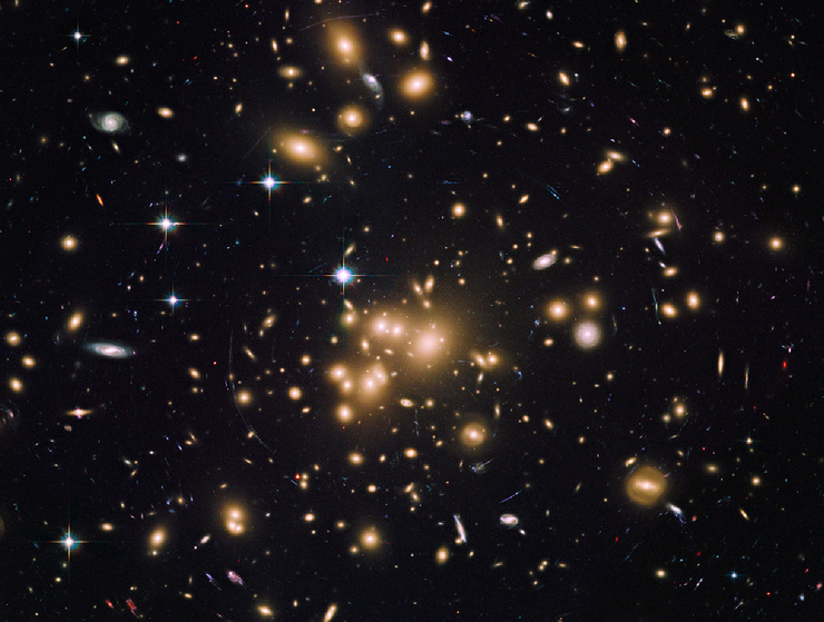 Abell deep field long exposure of tiny patch of black area, almost every speck is a galaxy, and note the gravitational lensing…