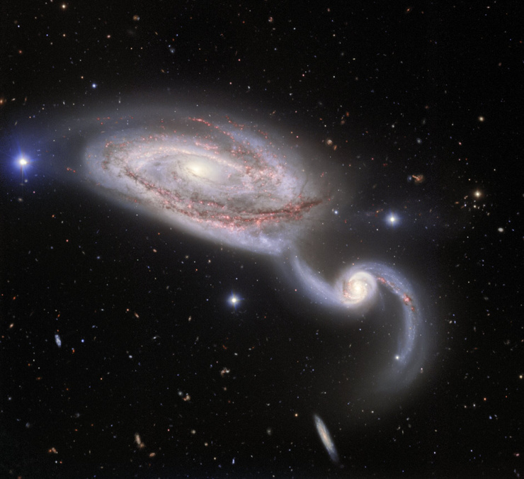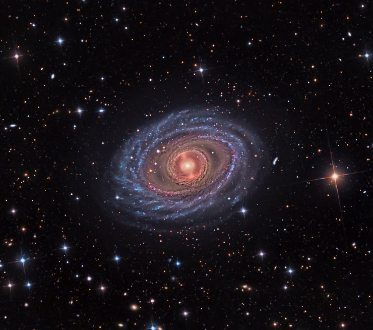NGC 1398 is an isolated barred spiral galaxy with an interesting double ring structure and feathery spiral arms positioned further out.